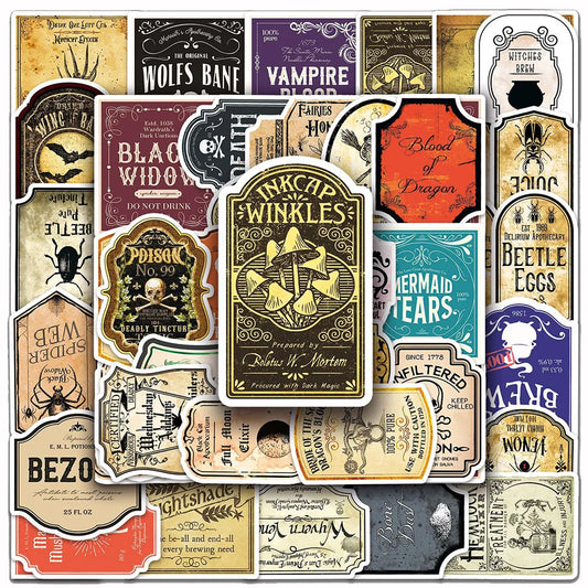 10/30/50pcs Funny Vintage Potion Label Graffiti Stickers Poster Skateboard Laptop Motorcycle Car Phone Waterproof Sticker Toy