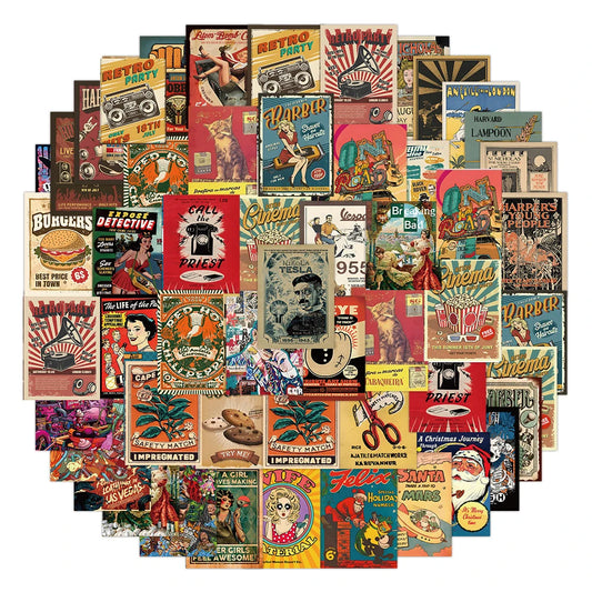 10/30/52PCS Vintage Fragment Graffiti Stickers Retro Decals DIY Phone Stationary Notebook Suitcase Guitar Bike Kids Sticker Toys