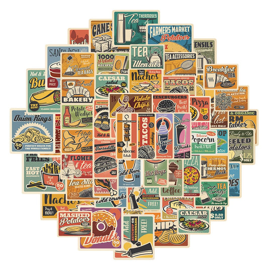 10/30/60pcs Retro Cartoon Ins Style Cute Stickers Vintage Funny Food Decals Phone Suitcase Laptop Notebook Car Wall Sticker Toy