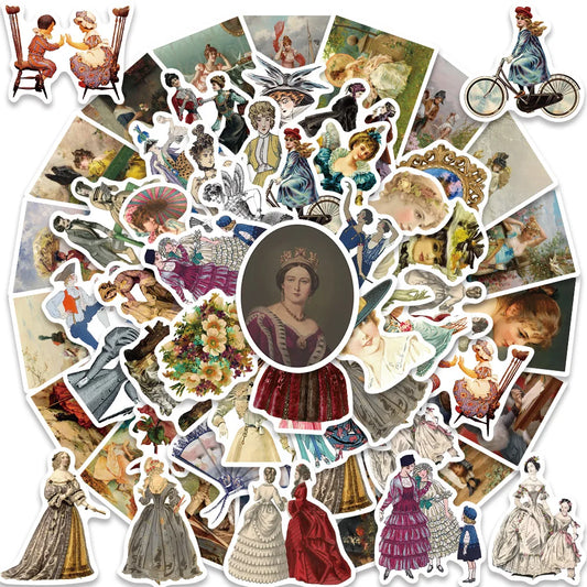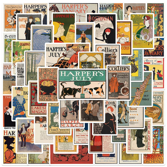 50PCS Vintage Art Poster Stickers for Scrapbook & Decoration