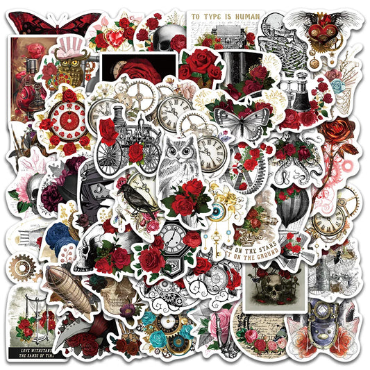 50PCS Vintage Steampunk Rose Flower Stickers for Bicycle, Skateboard, Luggage, Car, Laptop, Motorcycle, Kid Toy