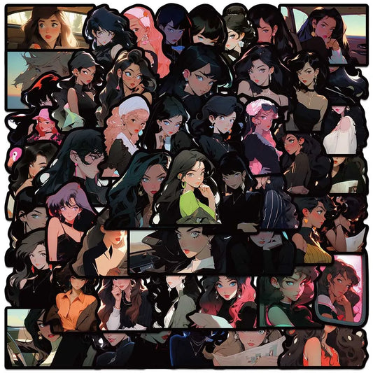 50pcs Retro Beauty Girl Stickers DIY Laptop Suitcase Guitar Skateboard Decals Waterproof Toy Stickers