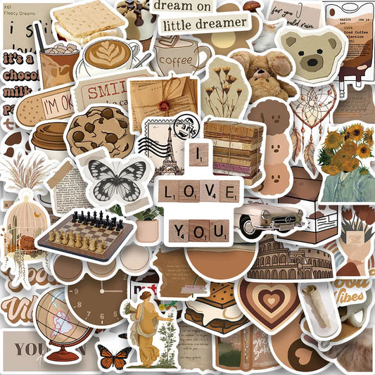 60PCS Vintage Brown Graffiti Cartoon Stickers for Wall, Luggage, Laptop, Car, Phone