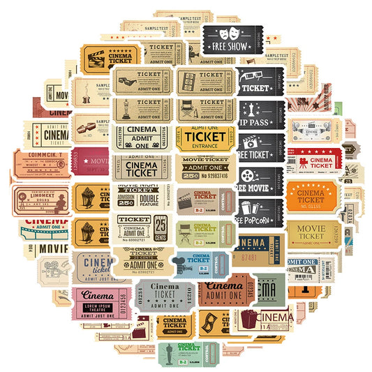 10/40/80pcs Vintage Classic Movie Ticket Stickers Laptop Skateboard Luggage Phone Car Motorcycle Waterproof Sticker Kids Toys