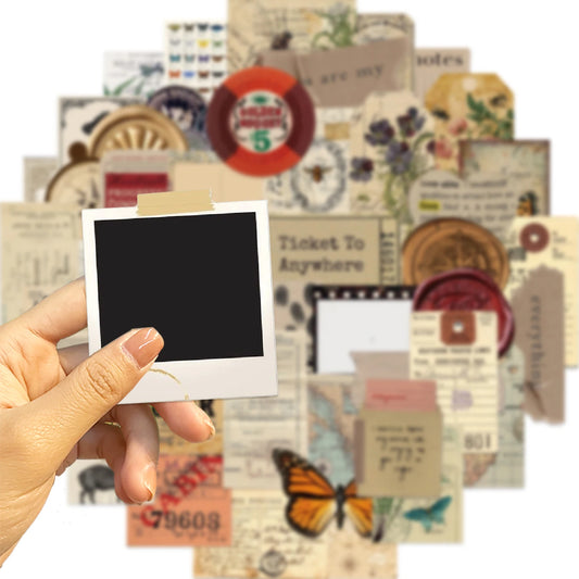50Pcs Retro Archives Stickers For Laptop Luggage Guitar Skateboard Fridge Notebook Sticker Vintage Newspaper Graffiti Decals