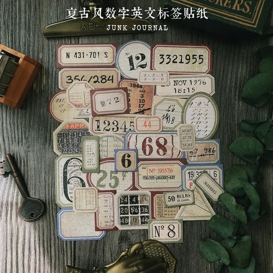 31Pcs Tim Holtz Style Number Junk Journal Label Vintage Stickers Retro DIY Album Planner Scrapbooking Material Craft Stickers