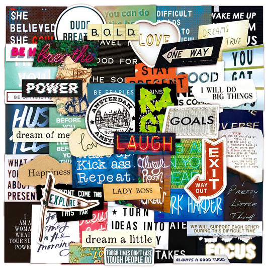 10/60pcs Inspirational English Words Stickers for Notebook Scrapbooking Craft Supplies Vintage Motivational Phrases Sticker Toy