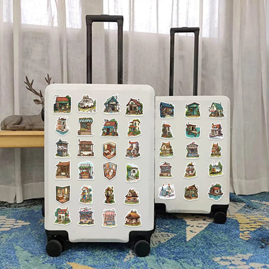 50pcs Vintage Retro Small House Stickers For Scrapbook Phone Laptop Guitar Stationery DIY Waterproof Sticker Decals Kids Toy