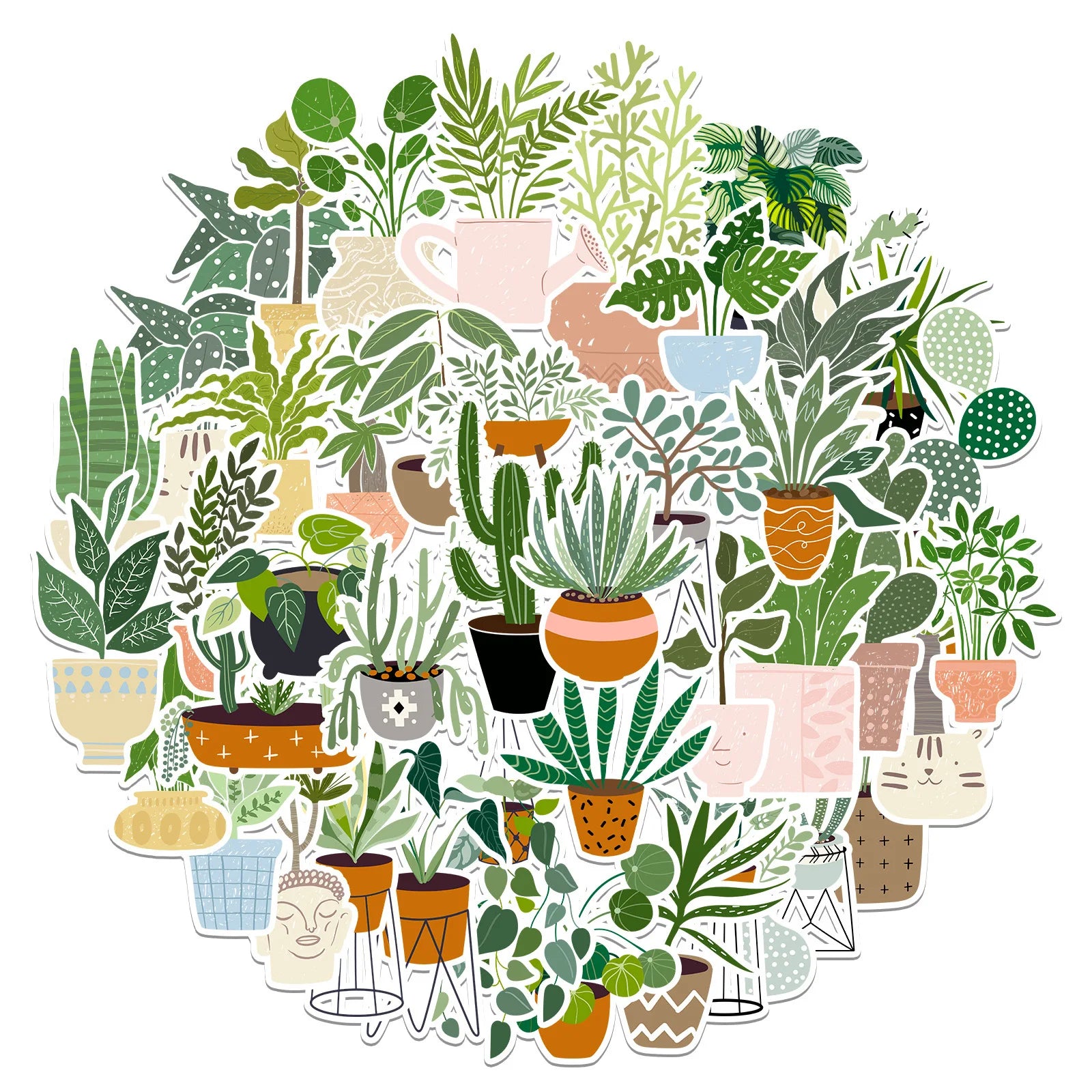 10/20/44pcs Cute Green Potted Plant Stickers Decorative Washi Decals Scrapbooking Laptop Phone Diary Stationery Graffiti Sticker