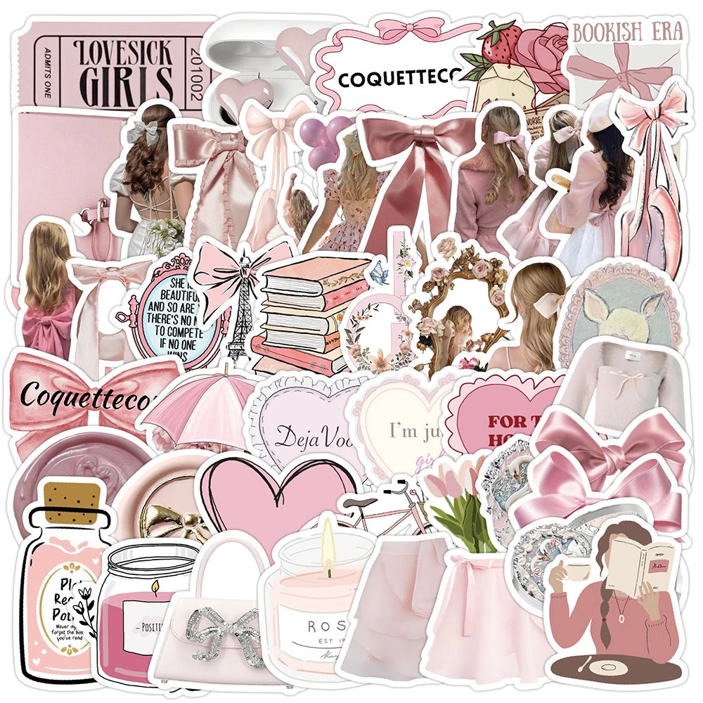 Cute Pink Coquette Girl Cartoon Stickers - Aesthetic Decals for Laptop, Phone, Suitcase, Fridge (10/30/50/100pcs)
