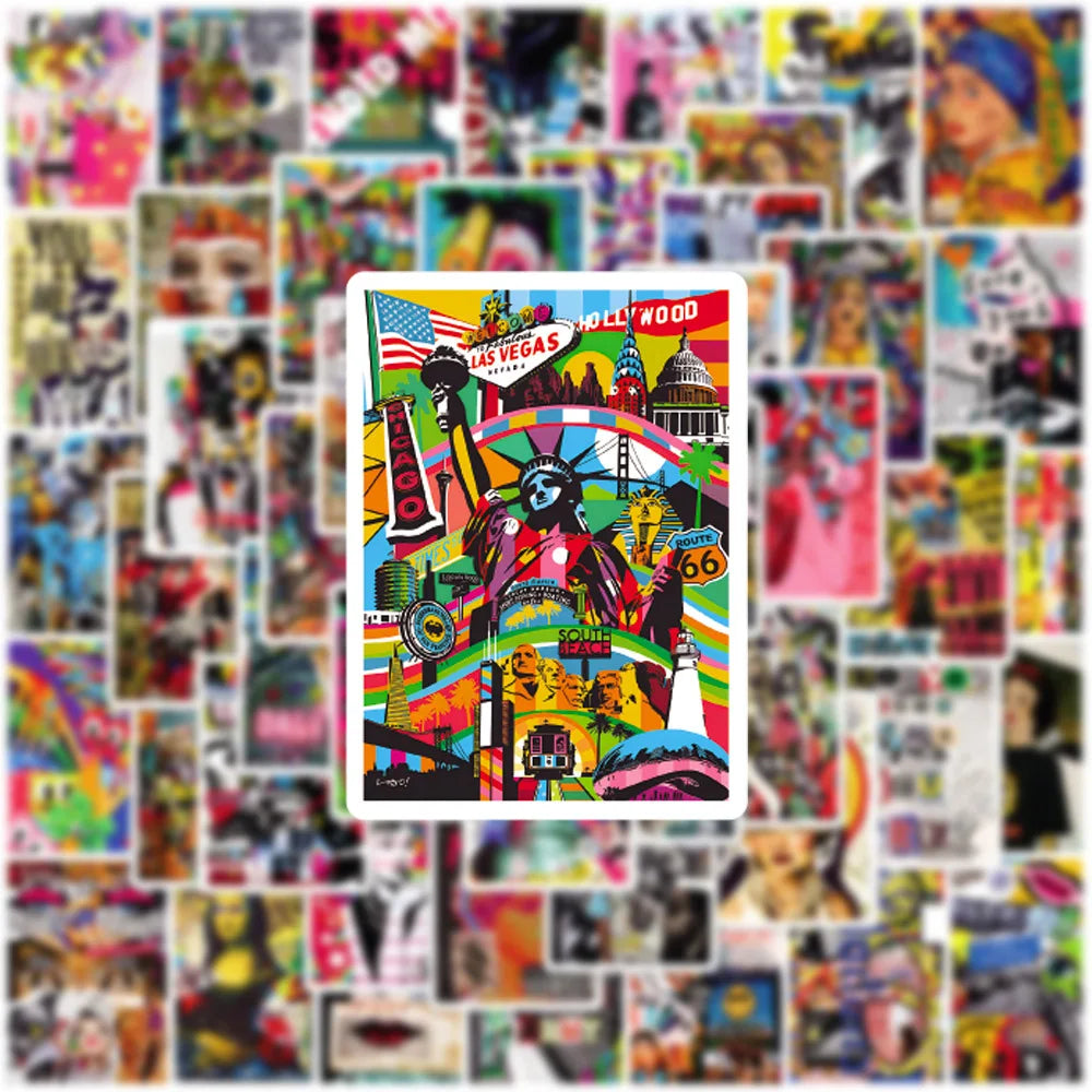 Art Illustration Sticker Set: Laptop, Luggage, Skateboard, DIY Decals, Fun for Kids