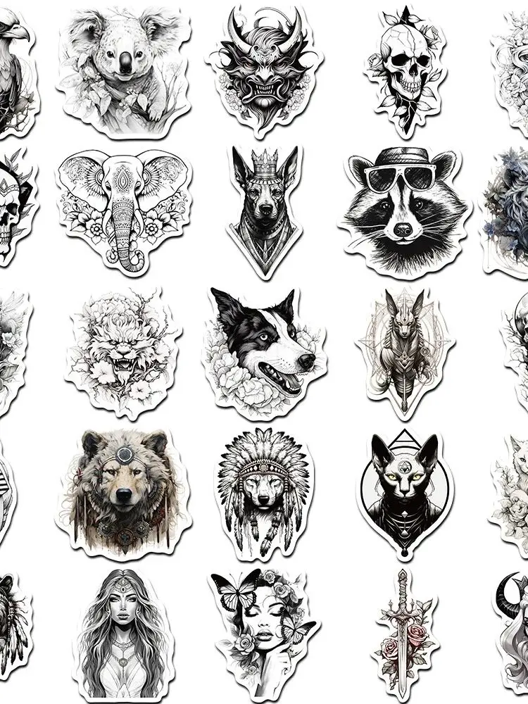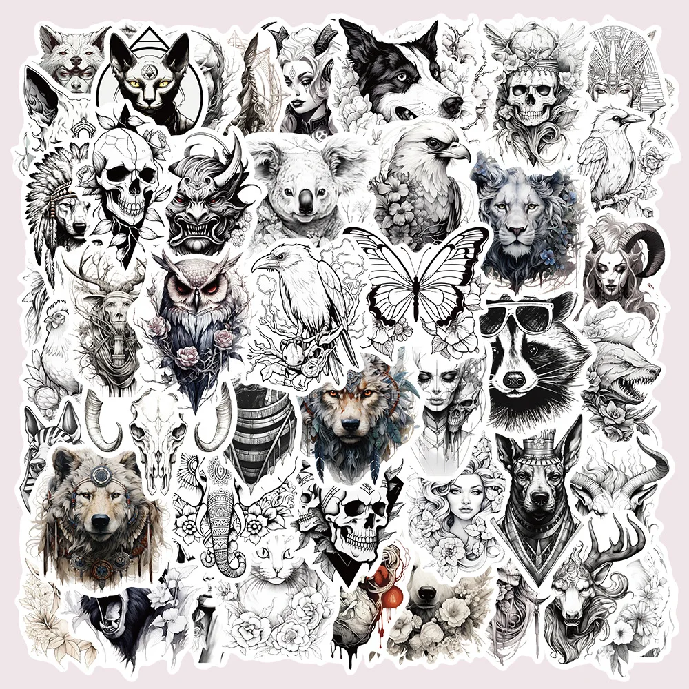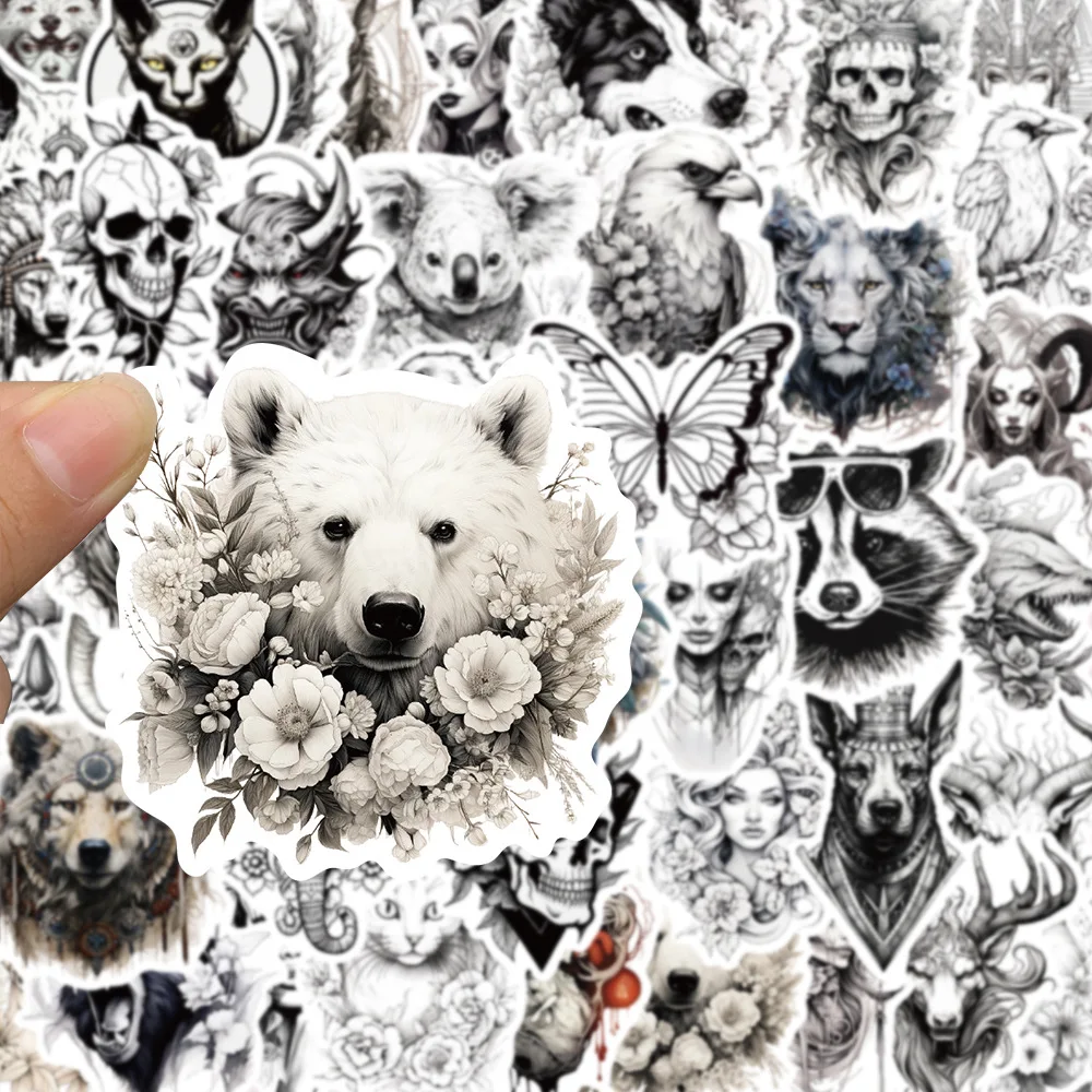 10/30/50pcs Black and white animal aesthetic decoration Sticker For Snowboard Laptop Luggage Car Fridge DIY Styling Vinyl