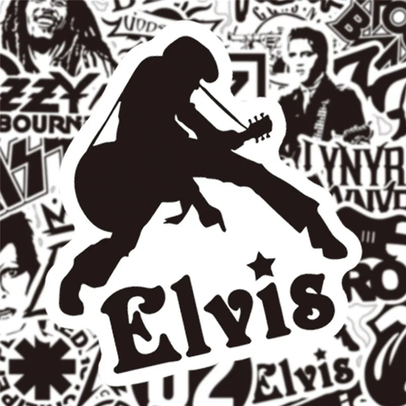 10/30/50Pcs Black and White Rock Band Stickers DIY Waterproof Skateboard Guitar Motorcycle Luggage Graffiti Cool Sticker Kid Toy