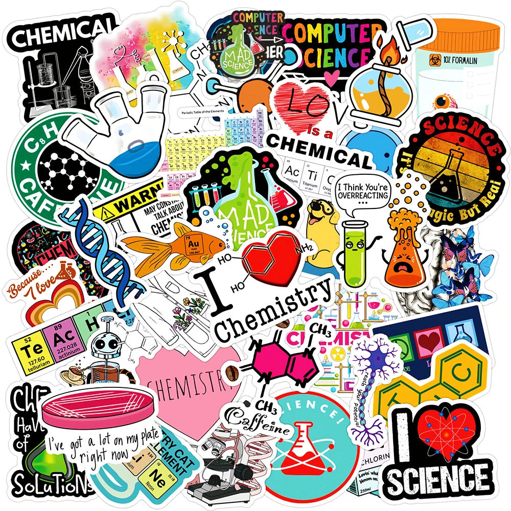 Funny Science Chemistry Biology Stickers - Laptop, Motorcycle, Suitcase, Phone, Car Decoration (10/30/50pcs)