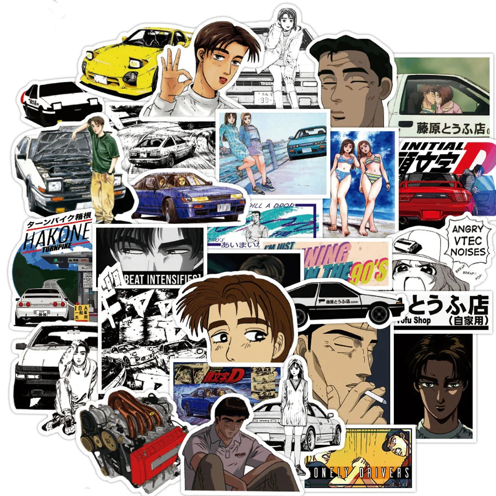 Initial D Stickers Pack: Laptop, Fridge, Guitar, Luggage, Skateboard, Phone, Car, Bike, Waterproof, Graffiti, Kids Toys