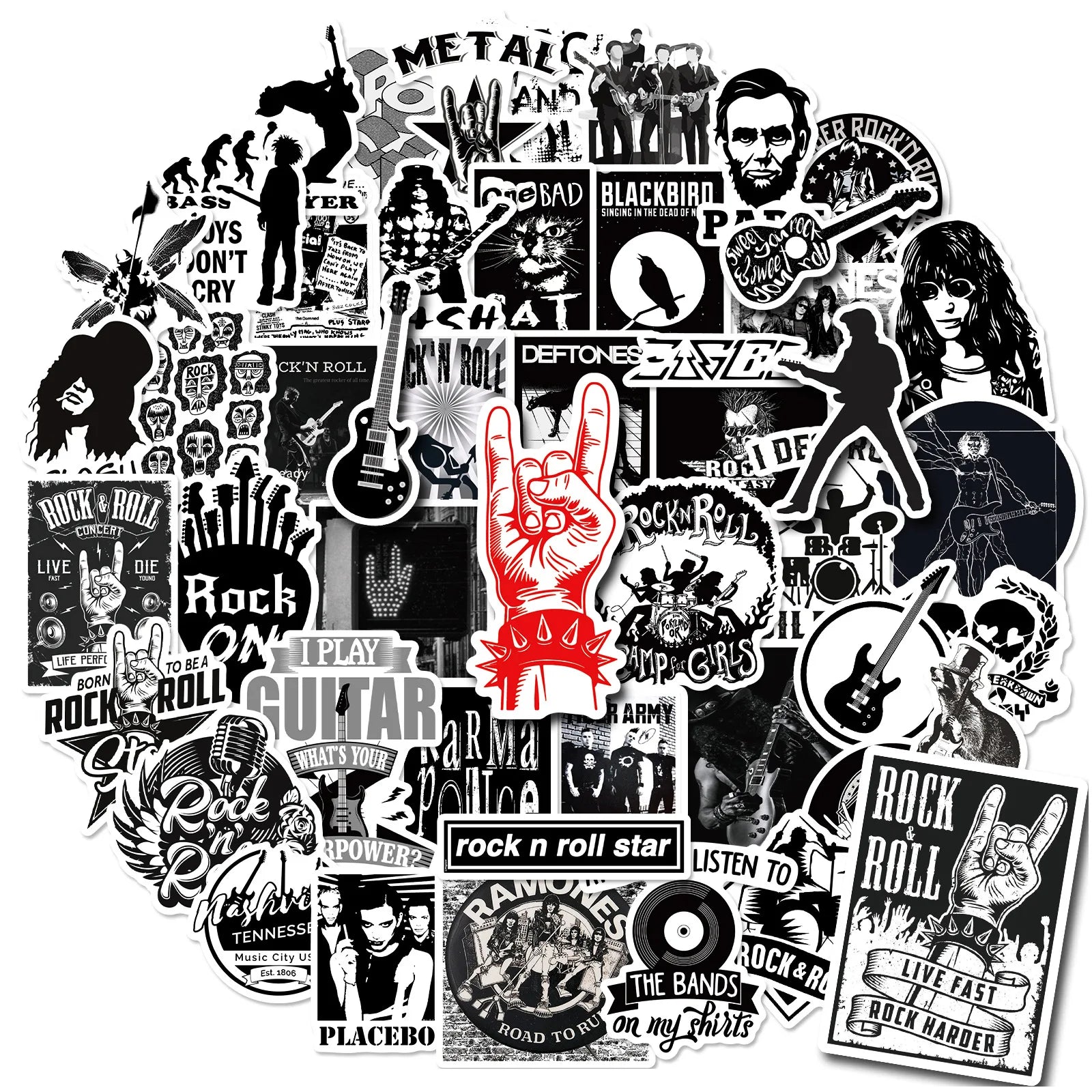 Metal Rock Stickers Decals for Guitar Motorcycle Luggage Skateboard Car JDM Music 10/30/50PCS