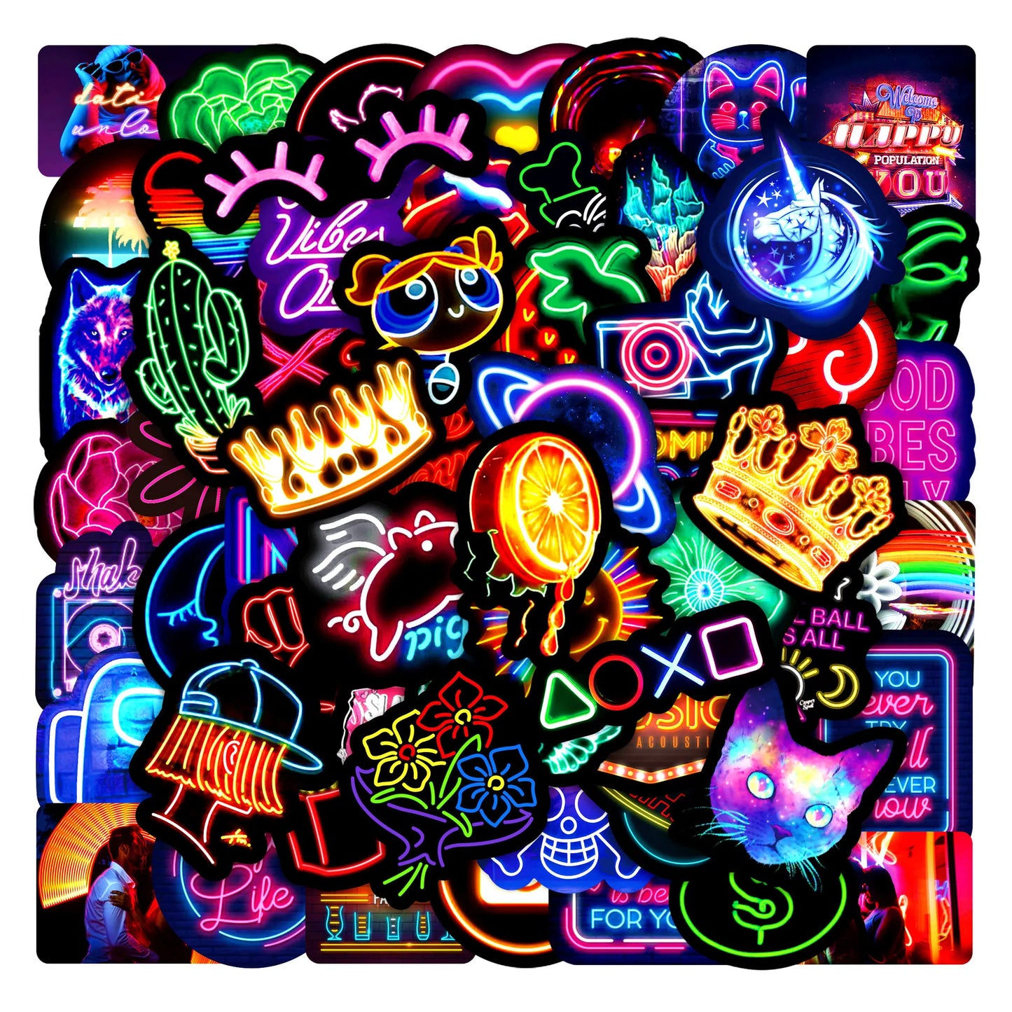 10/30/50PCS Neon Light Sticker Graffiti Sticker Scrapbook Notebook Car Guitar Wall Sticker Motorcycle Cute Cartoon Decoration