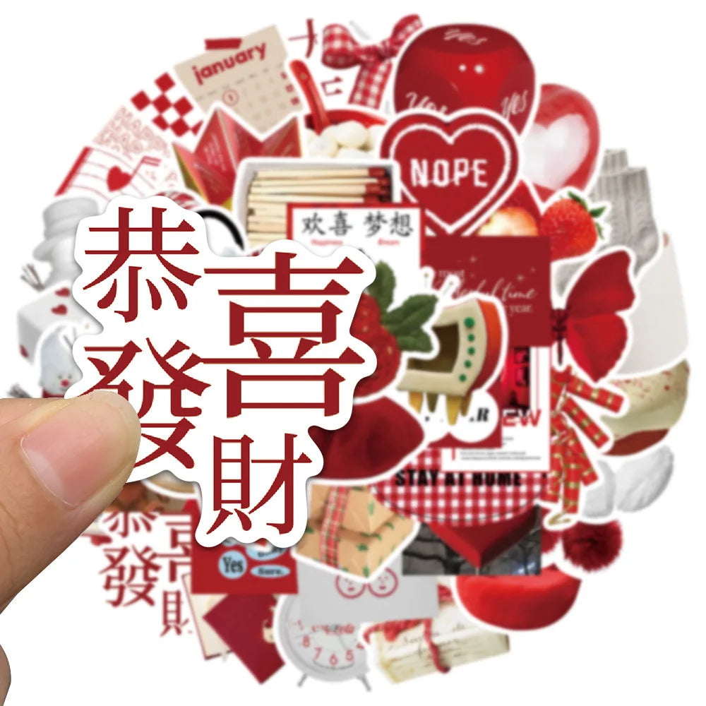 Red Chinese New Year Stickers 10/30/50PCS for Phone Laptop Luggage Skateboard Decals Kids Toy