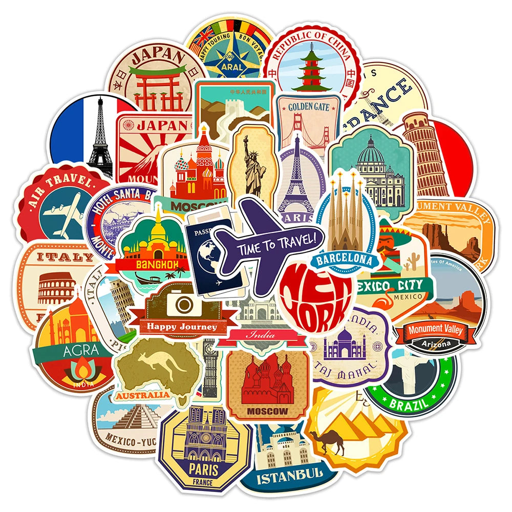 10/30/50pcs Retro Travel Landmark Building Stickers Vintage Decal Skateboard Luggage Laptop Phone Car Waterproof Sticker Kid Toy