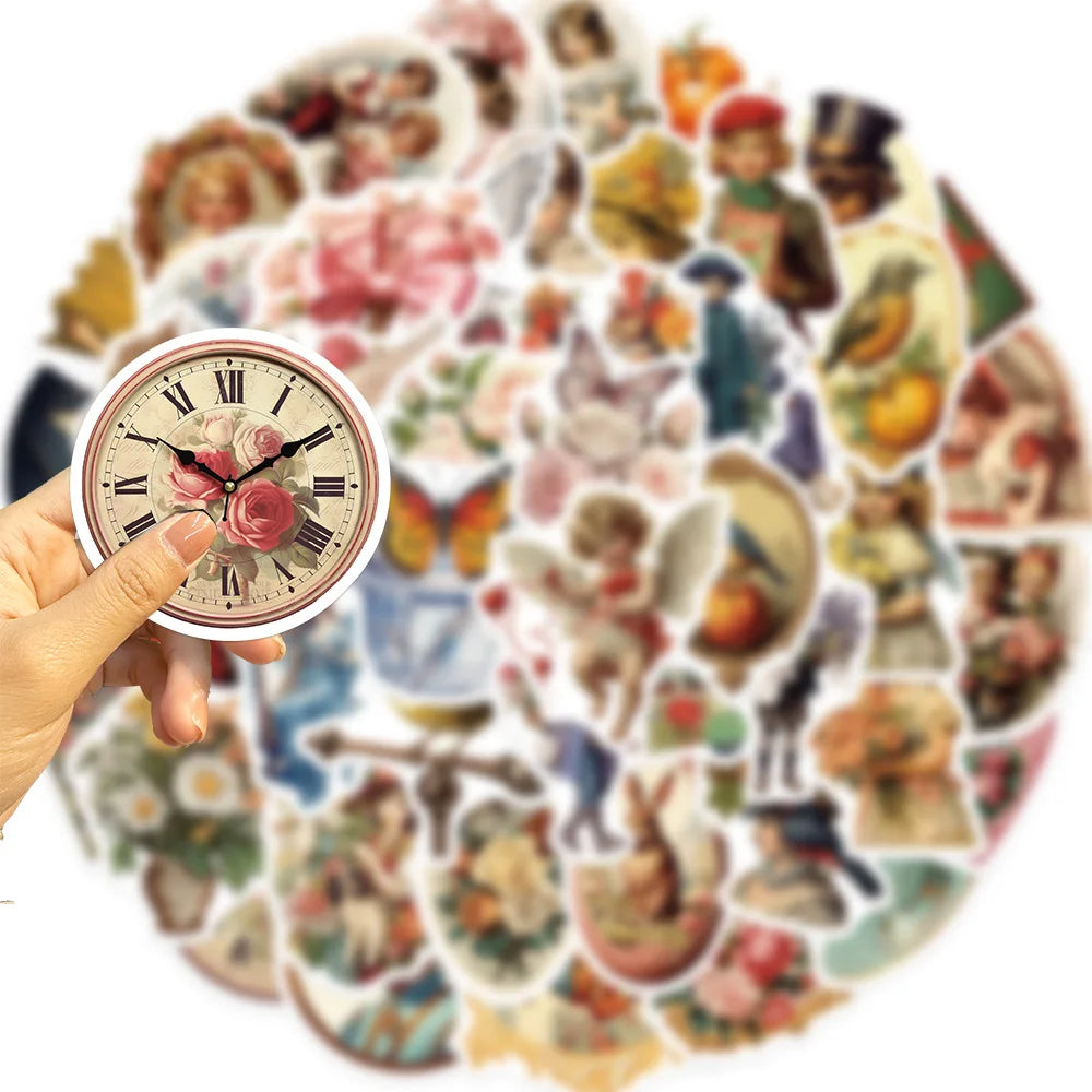 Transform your everyday items into timeless treasures with our 10/30/50PCS Vintage Old Times Cartoon Stickers. These Victorian Cute Angel Decals are perfect for adding a touch of nostalgia and charm to your suitcase, scrapbook, phone, laptop, or any DIY project. Inspired by the elegance of the Victorian era and the whimsical nature of classic cartoons, these waterproof stickers are both durable and delightful.