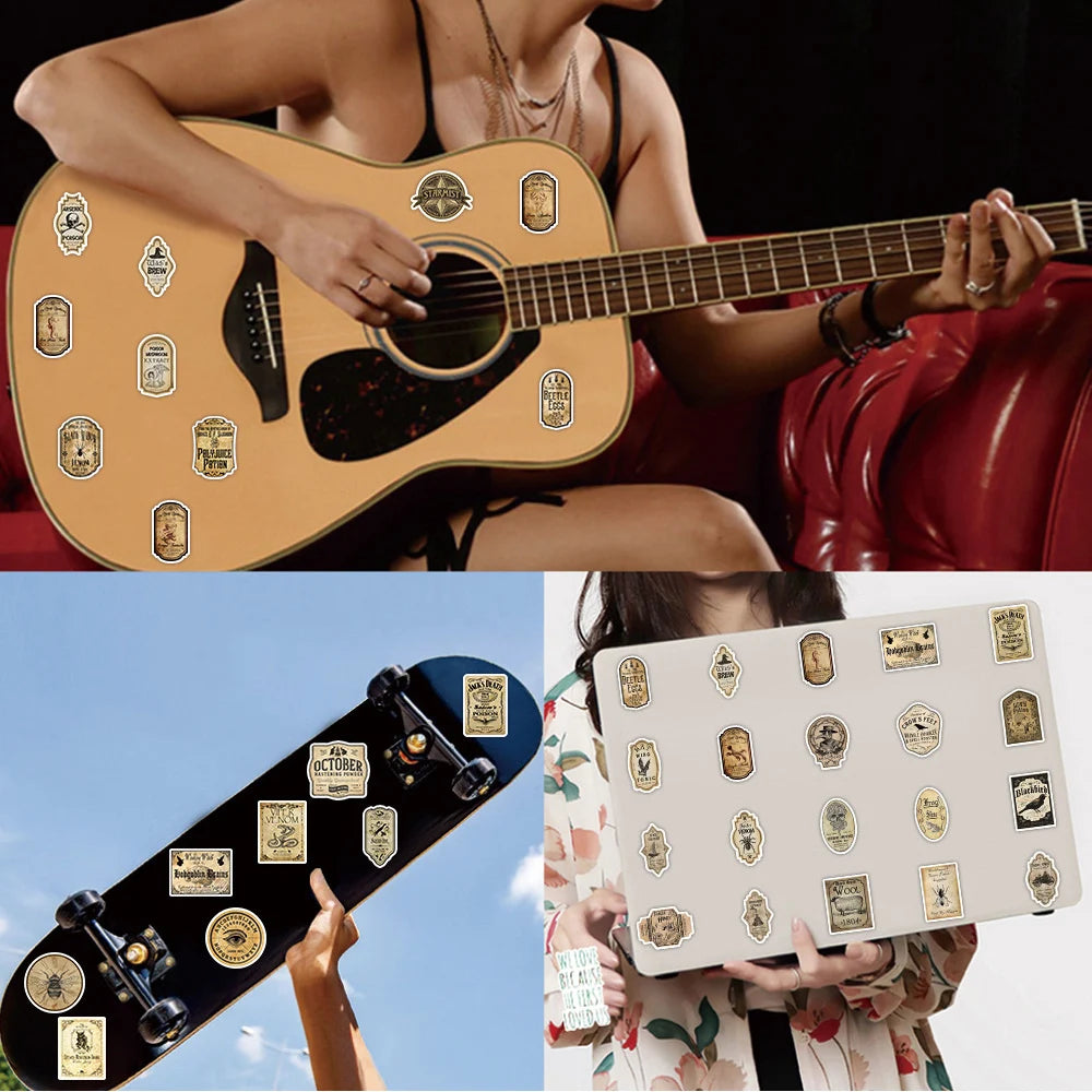 - **Vintage and Retro Designs**: Each sticker features intricate designs reminiscent of vintage potion labels, perfect for fans of classic horror and gothic aesthetics.