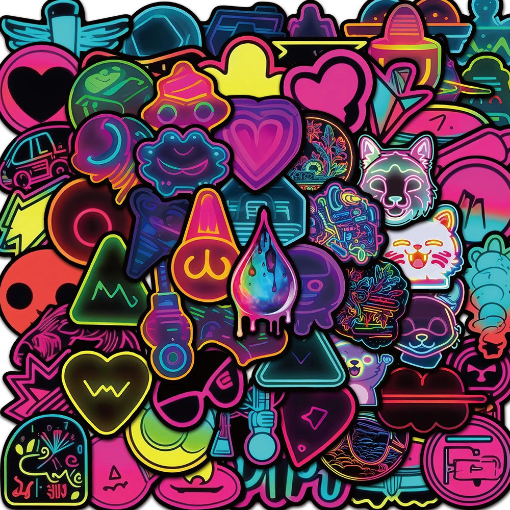 Cartoon Neon Light Stickers for Skateboard, Laptop, Motorcycle - 10/30/60pcs