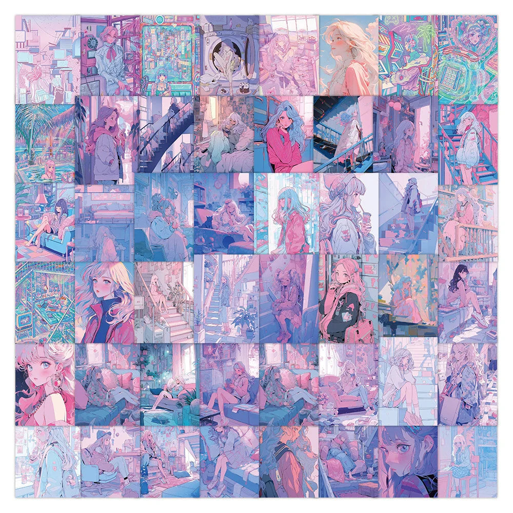 Kawaii Laser Girl Cartoon Stickers - Cute Aesthetic Decals for Laptop, Phone, Notebook, Fridge