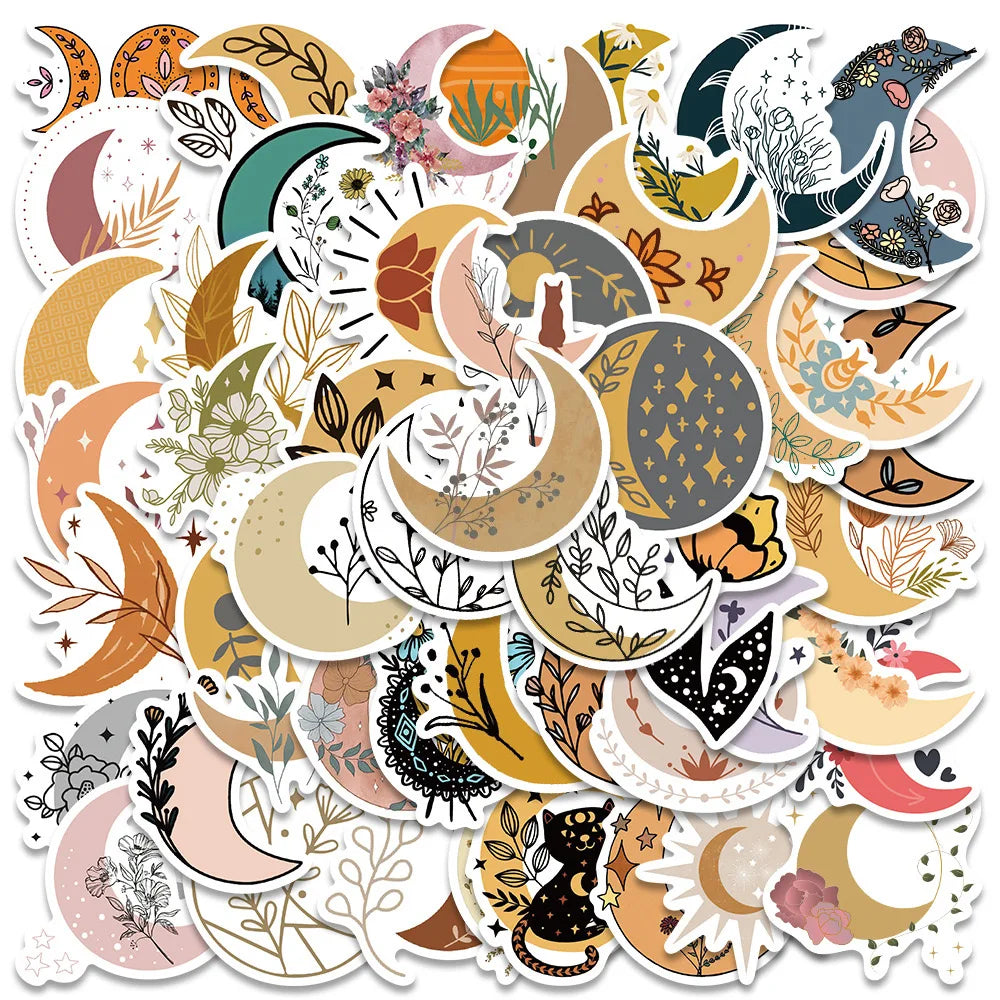 Vintage Sun Moon Flower Stickers - Aesthetic Decals for Scrapbooking, Laptop, Luggage, Car, Graffiti (10/50/100PCS)