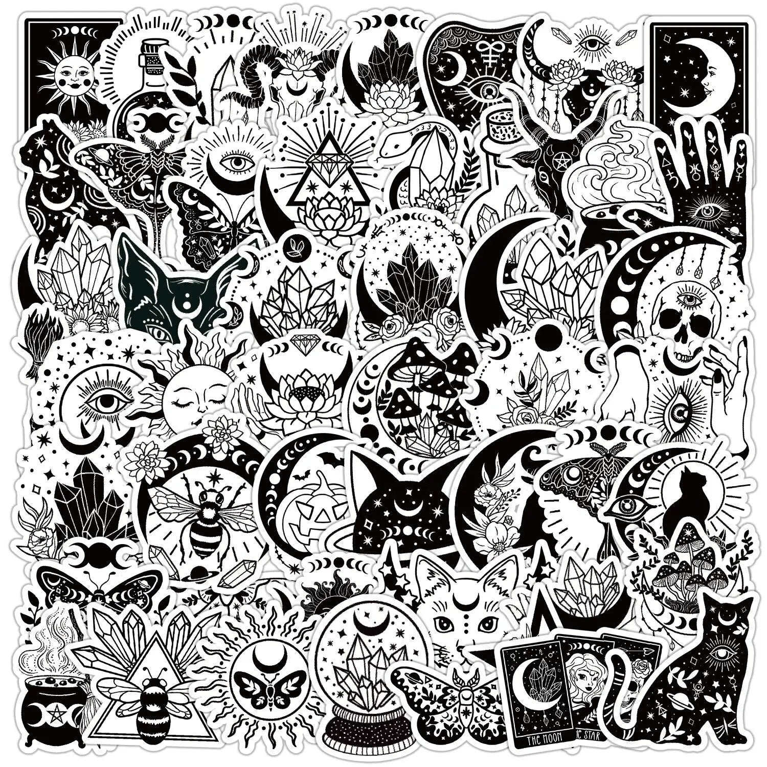 10/50PCS Black White Gothic Magic Witch Cartoon Stickers Halloween Tarot Goth Decals DIY Phone Laptop Luggage Skateboard Sticker