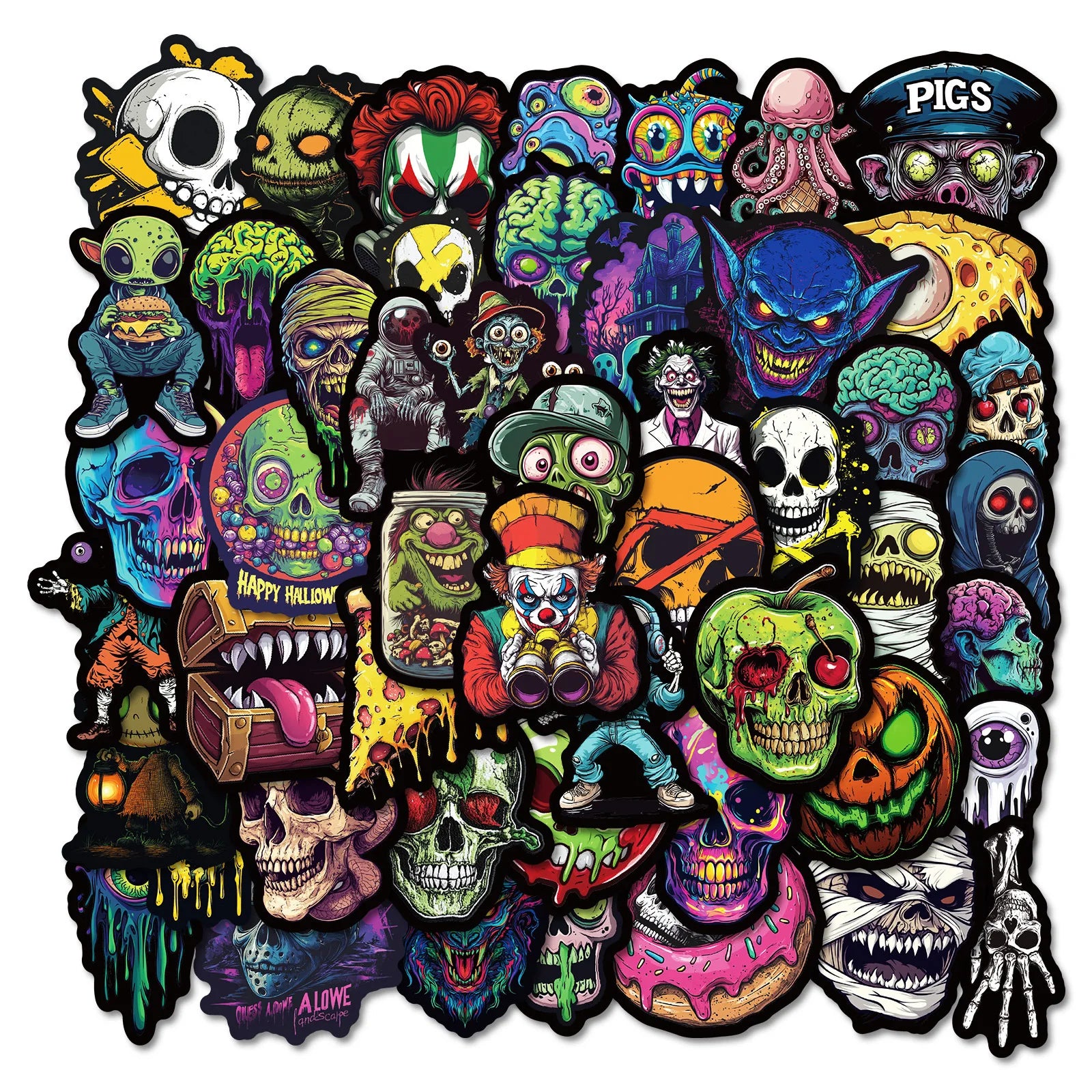 Halloween Horror Skull Zombie Stickers Pack for Skateboard, Laptop, Motorcycle, Fridge, Guitar, Travel