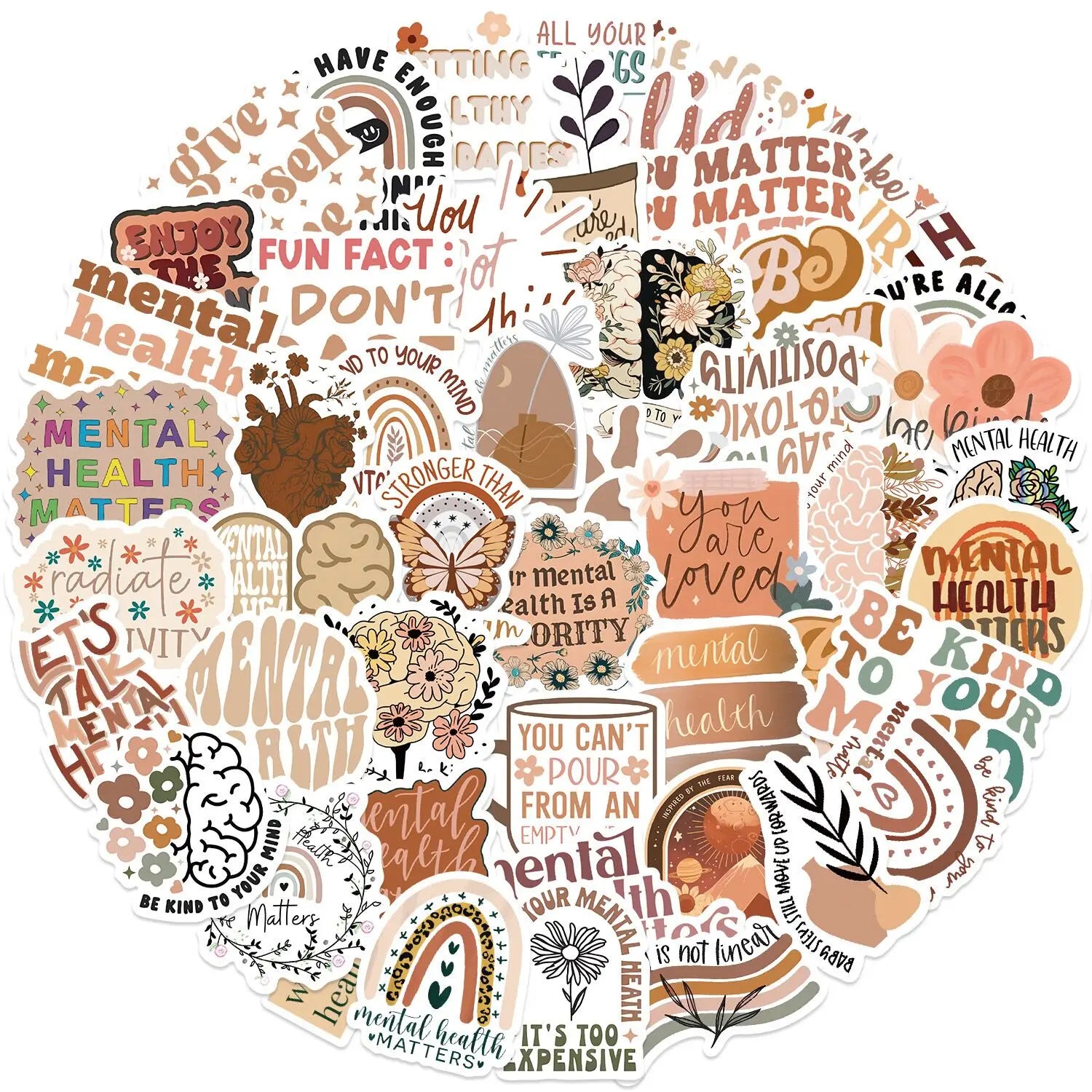 10/50PCS Boho Mental Health Stickers Waterproof Vinyl Decals for Scrapbook Laptop Bottle Luggage Notebook