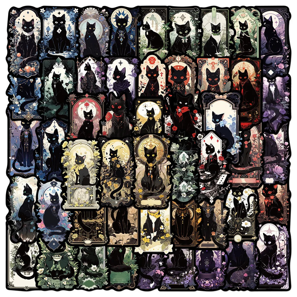 10/50PCS Gothic Dark Black Cat Flower Stickers Aesthetic Graffiti Goth Decal Toy DIY Scrapbook Bottle Phone Luggage Cool Sticker