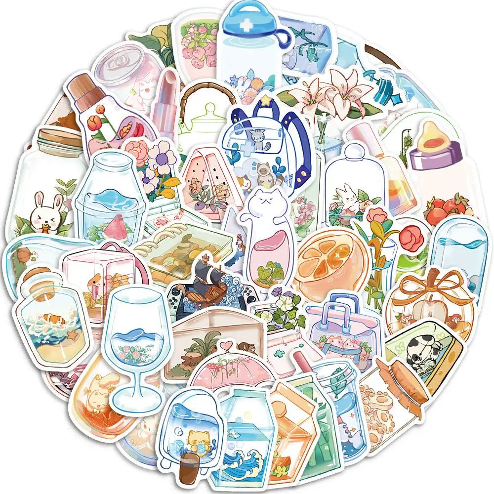 10/50pcs Ins Style Summer Drink Bottle World Cartoon Stickers Aesthetic Decals for Laptop Bicycle Skateboard Luggage Kids Toy