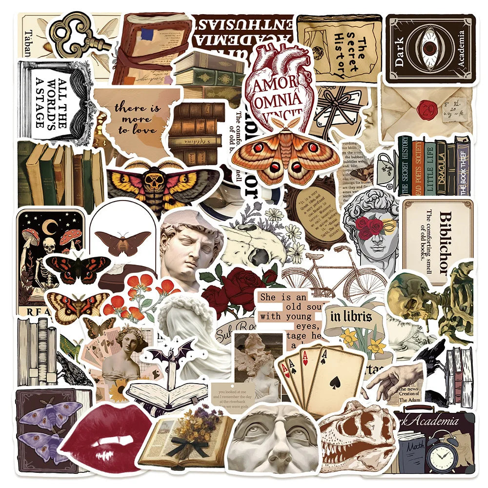 10/50pcs Retro Gothic Dark Skull Academia Stickers Aesthetic Art Decals Laptop Luggage Guitar Phone Waterproof Graffiti Sticker