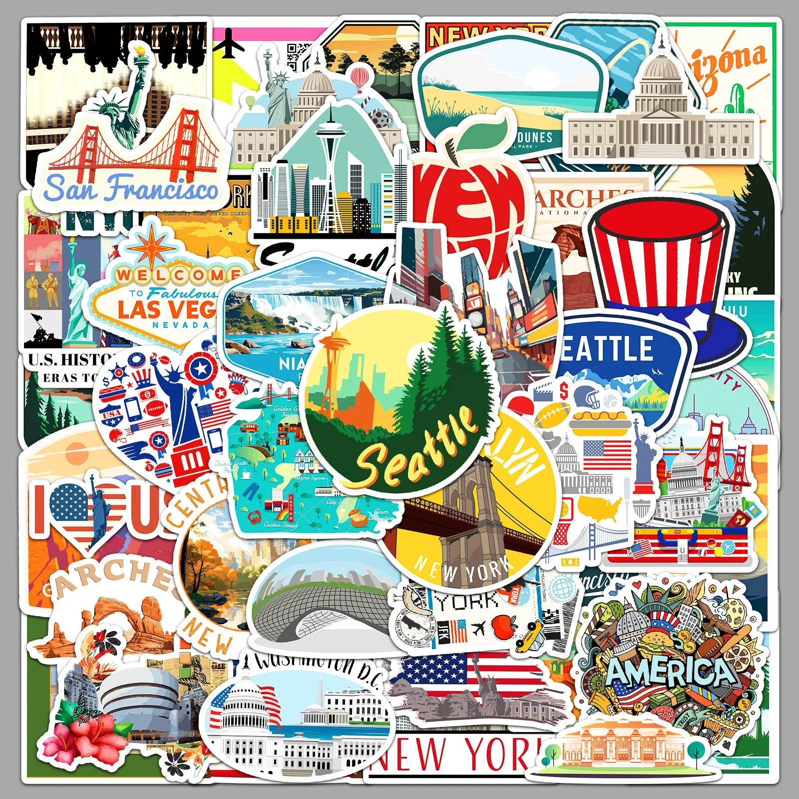 10/50Pcs USA American New York Travel Stickers Aesthetic Decals DIY Luggage Phone Motorcycle Car Bike Laptop Kids Sticker Toy