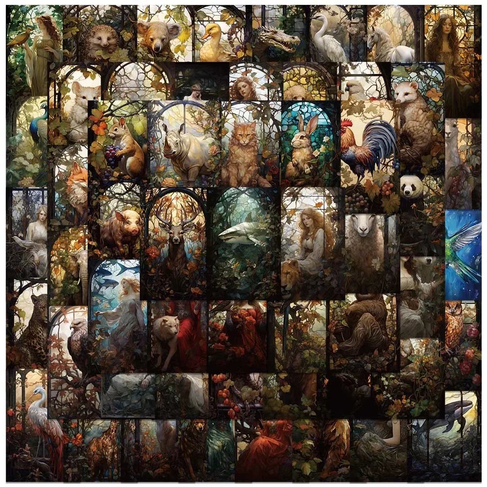 10/50pcs Vintage Forest Glass Animal Stickers Aesthetic Decals For Suitcase Water Bottle Bike Scrapbook Skateboard Car Sticker