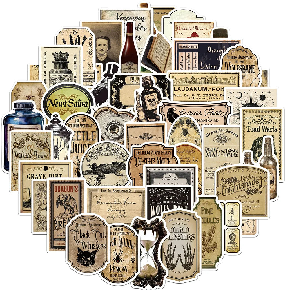 Vintage Potion Label Halloween Stickers Gothic Witch Decals Waterproof 10/50pcs