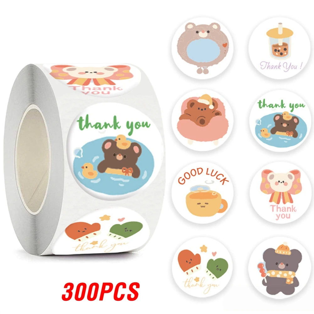 100-500pcs Cartoon Animals Sticker for Children 8 Designs Cute Thank You Scrapbooking Stationery Sealing Labels Rewards Stickers