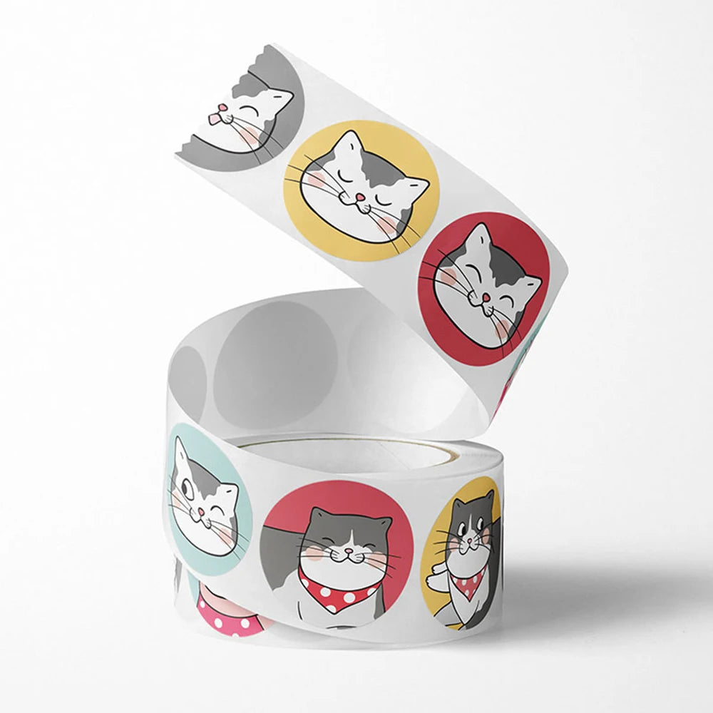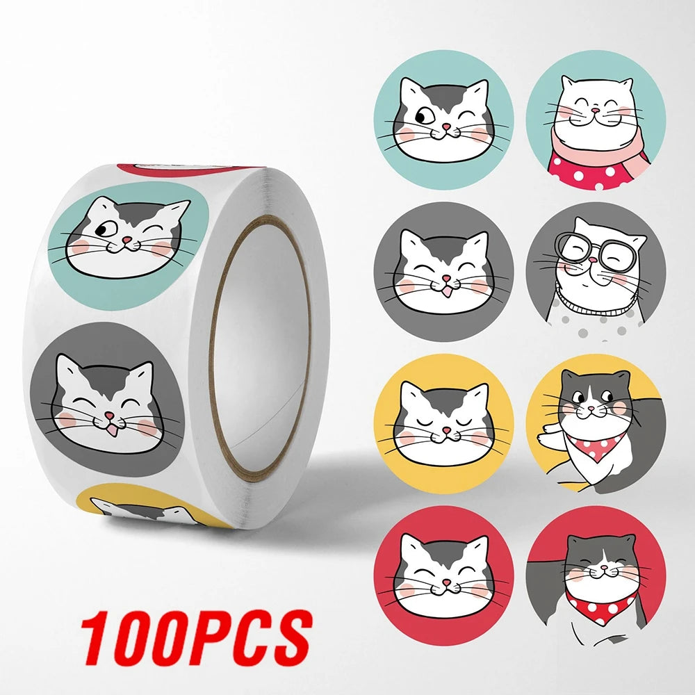 **100-500pcs Cartoon Cat Stickers Round Adhesive Labels For Student Teacher Prize Business Gift Wraps Decorative Stickers**