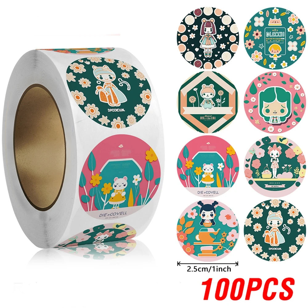 100-500pcs Cute Reward Sticker 1inch Cartoon Animal Stickers For Kids Gift Decor Envelope Sealing Labels Stationery Stickers