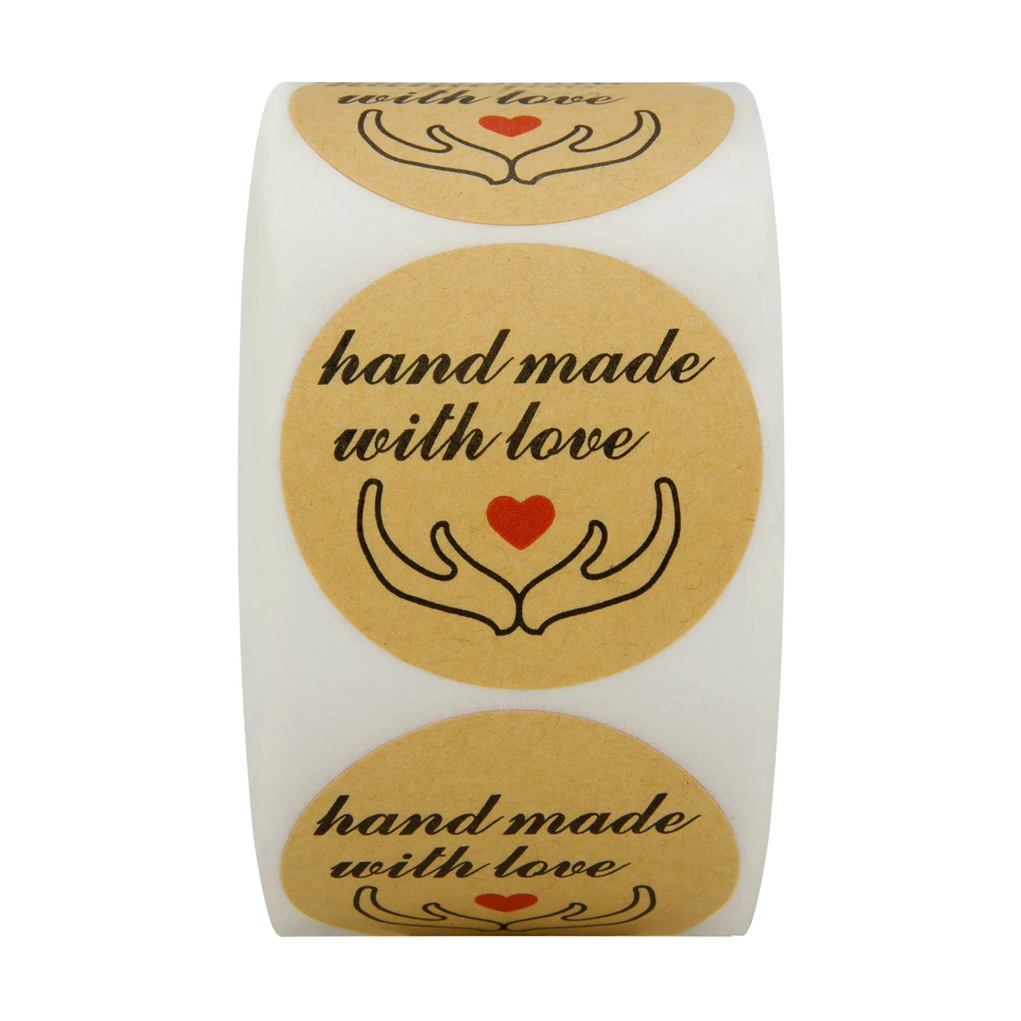 100-500pcs Handmade With Love Sticker Round Kraft Paper Adhesive Labels Baking Wedding Decoration Party Decoration Stickers