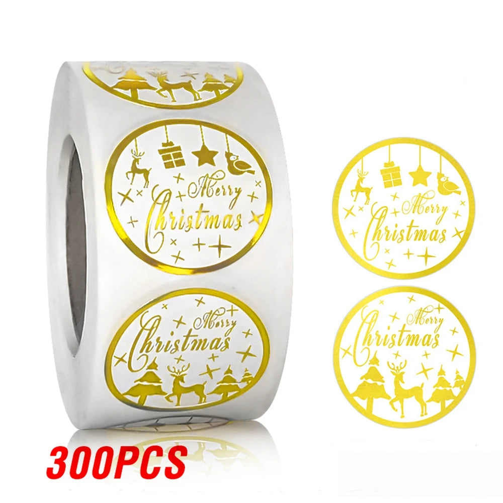 100-500pcs Round Merry Christmas Stickers Gold Foil Christmas Envelope Seals Holiday Stickers for Gift Boxes