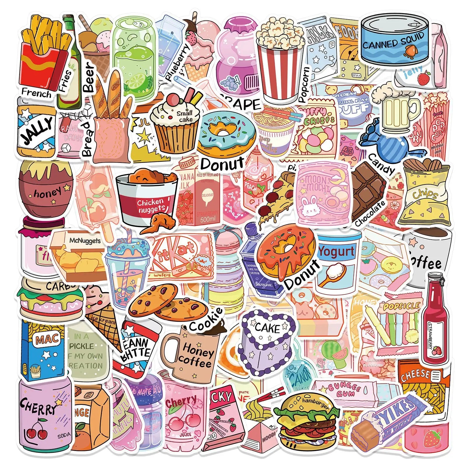 100Pcs Cartoon Snack Drink Stickers Waterproof Decals