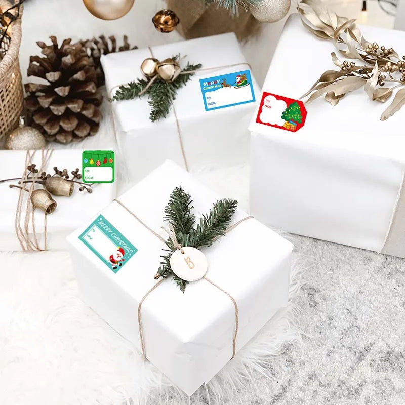 108Pcs/12Sheets Santa Claus Christmas Tree Elk Candy Bag Sealing Sticker Gift Box Name Tags Xmas New Year Present Label Sticker