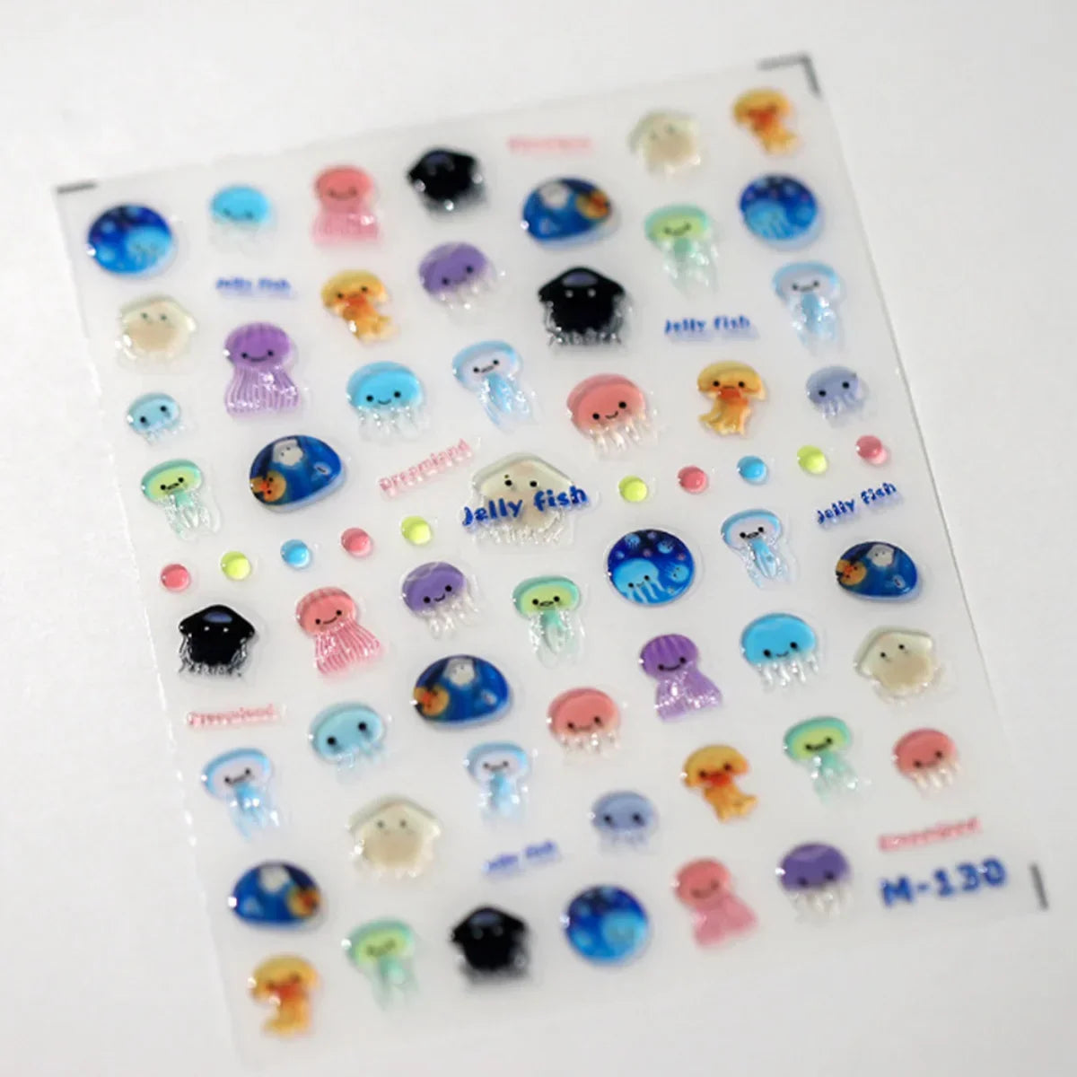 5D Kawaii Jellyfish Nail Art Stickers Hot Stamping Manicure Decals