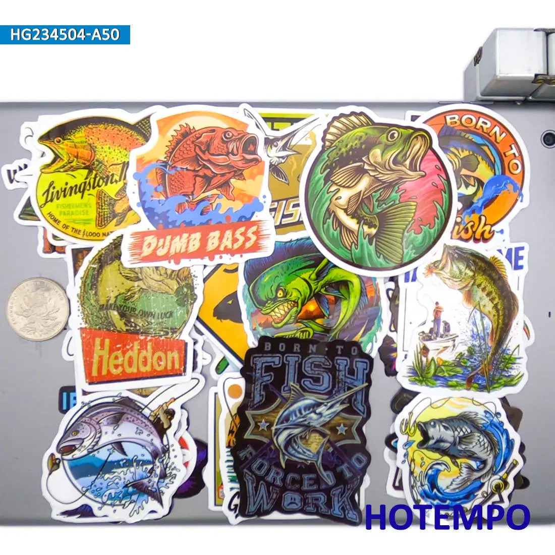 20/30/50Pieces Fisherman Style Go Fishing Stickers for Boats Fish Box Luggage Scrapbook Car Motorcycle Phone Laptop Sticker Toys