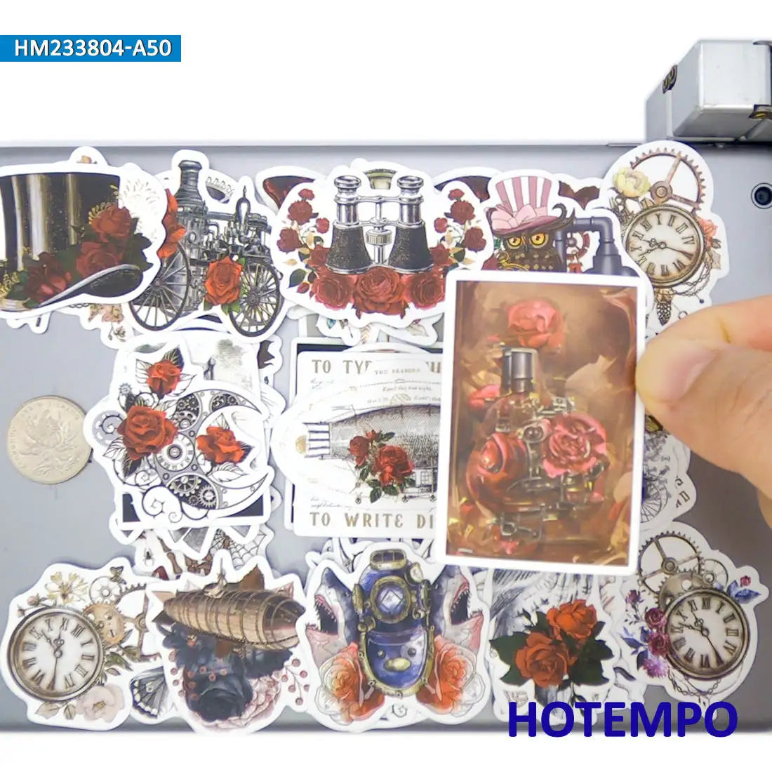 20/30/50Pieces Retro Victorian Age Steampunk Style Gothic Rose Stickers for Scrapbook Car Bike Luggage Phone Laptop Sticker Toys
