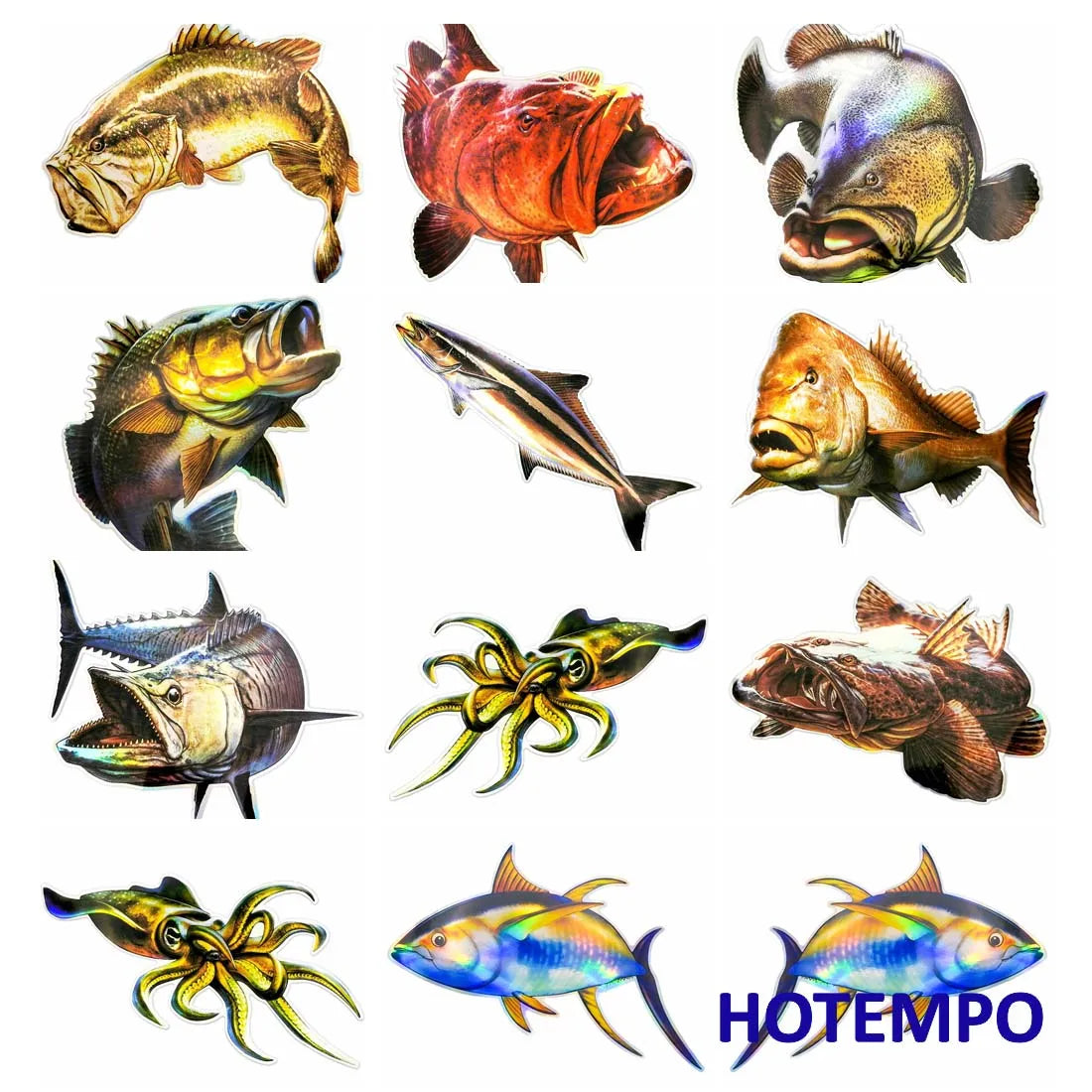 20cm Big Size Marine Life Deep Sea Fish Laser Style Waterproof Stickers for Fisherman Boat Luggage Laptop Motorcycle Car Sticker