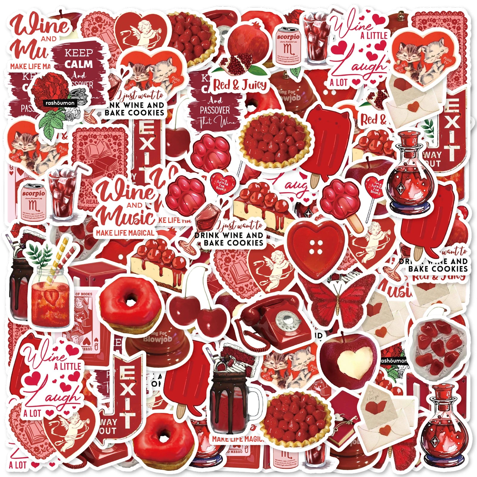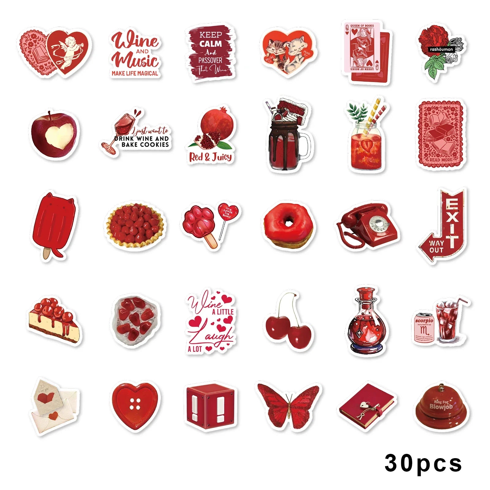 30pcs Rose Cherry Red Graffiti Stickers Waterproof PVC Decals for Notebook, Water Cup, Suitcase, Guitar, Toy, Scrapbook