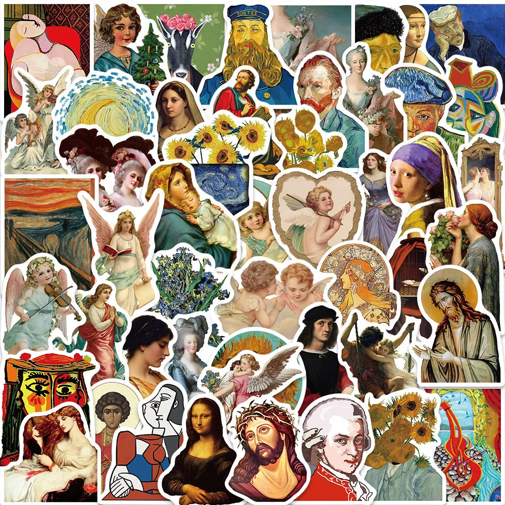 40/50Pcs Van Gogh Artist Oil Painting Style Art Pattern Sticker for Laptop Phone Guitar Suitcase Notebook Motorcycle Car Sticker